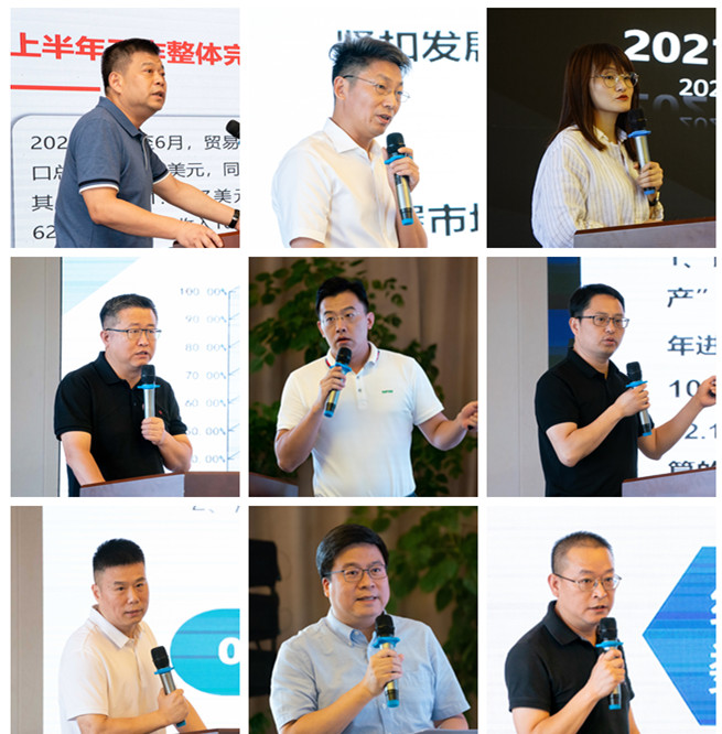 黃永增總裁作題為《咬定目標 突出重點 卯足干勁 奮力前行》的半年度工作報告,圍繞內(nèi)外貿(mào)業(yè)務經(jīng)營、重點項目推進、研發(fā)技術(shù)成效、經(jīng)營流動性改善與職能建設(shè)等方面總結(jié)了上半年總體經(jīng)營工作,既肯定成績也分析問題;解讀和分析了下半年外貿(mào)出口、跨境電商、大宗商品價格、貨幣政策及人民幣匯率等形勢變化和趨勢;重點部署下半年工作任務和要求,強調(diào)各公司要聚焦年度目標,加強產(chǎn)業(yè)形勢研判、精準施策,加快重點項目推進進度,加強流動性常態(tài)化管理,加強各層面戰(zhàn)略合作,強化職能管理,凝聚共識,匯聚合力,全力以赴實現(xiàn)公司年度目標任務。