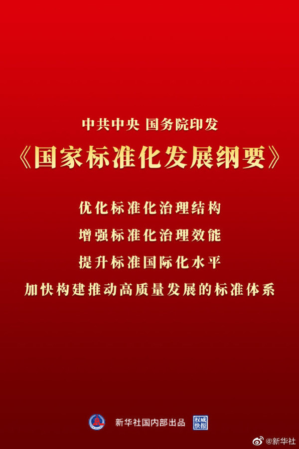 中共中央、國務(wù)院印發(fā)《國家標(biāo)準(zhǔn)化發(fā)展綱要》,為未來15年我國標(biāo)準(zhǔn)化發(fā)展設(shè)定了目標(biāo)和藍(lán)圖。標(biāo)準(zhǔn)是經(jīng)濟(jì)活動(dòng)和社會(huì)發(fā)展的技術(shù)支撐,與人們的生活息息相關(guān)。未來,從住房、物業(yè)服務(wù),到新能源汽車、無人駕駛,以及平臺(tái)經(jīng)濟(jì)、共享經(jīng)濟(jì)等領(lǐng)域,都將推進(jìn)完善標(biāo)準(zhǔn)化建設(shè)。